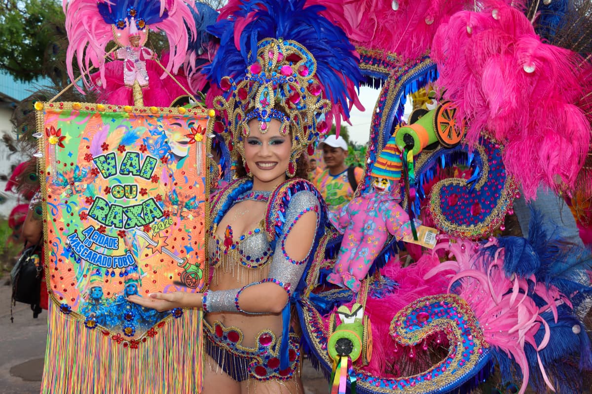 À frente do bloco, ostentando o símbolo oficial do “Vai ou Raxa”, Ana Luiza Borges, de 18 anos, estreou como porta-estandarte na quarta-feira oficial de Carnapauxis. Ela também descreveu a emoção de fazer parte da folia.