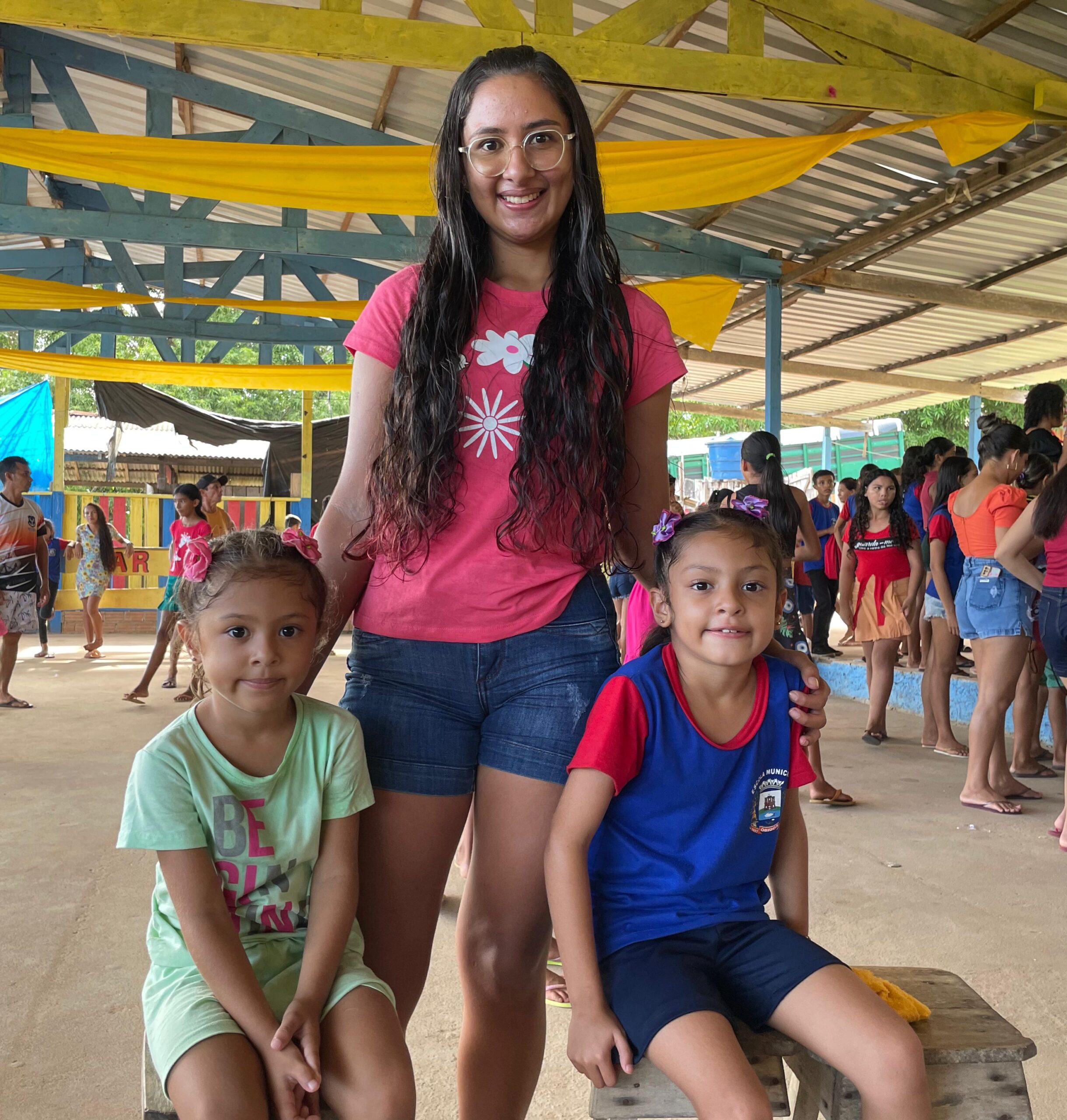 Camila e as filhas se deslocaram da comunidade Irmãos Unidos para a Vila Curumu, para receberem os kits escolares.